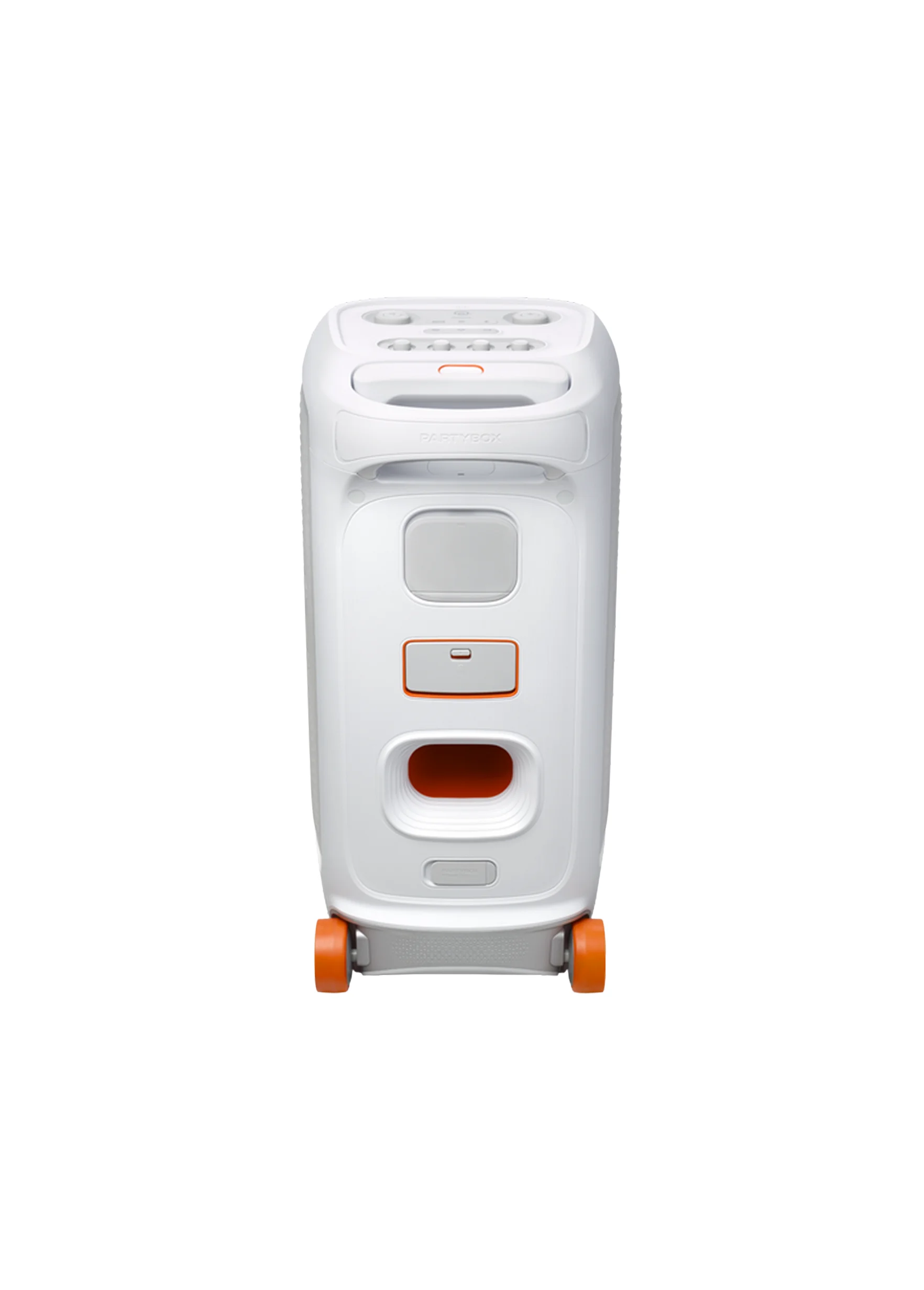 Parlante portátil JBL PartyBox Stage 320 con potencia de 240W RMS, dos woofers de 6.5 pulgadas y dos tweeters de 1 pulgada con tecnología AI Sound Boost. Cuenta con batería intercambiable de hasta 18 horas de reproducción, certificación IPX4 resistente a salpicaduras, luces LED sincronizadas con la música, conectividad Bluetooth 5.4, entradas duales para micrófono y guitarra, puerto USB, manija telescópica y ruedas para transporte.