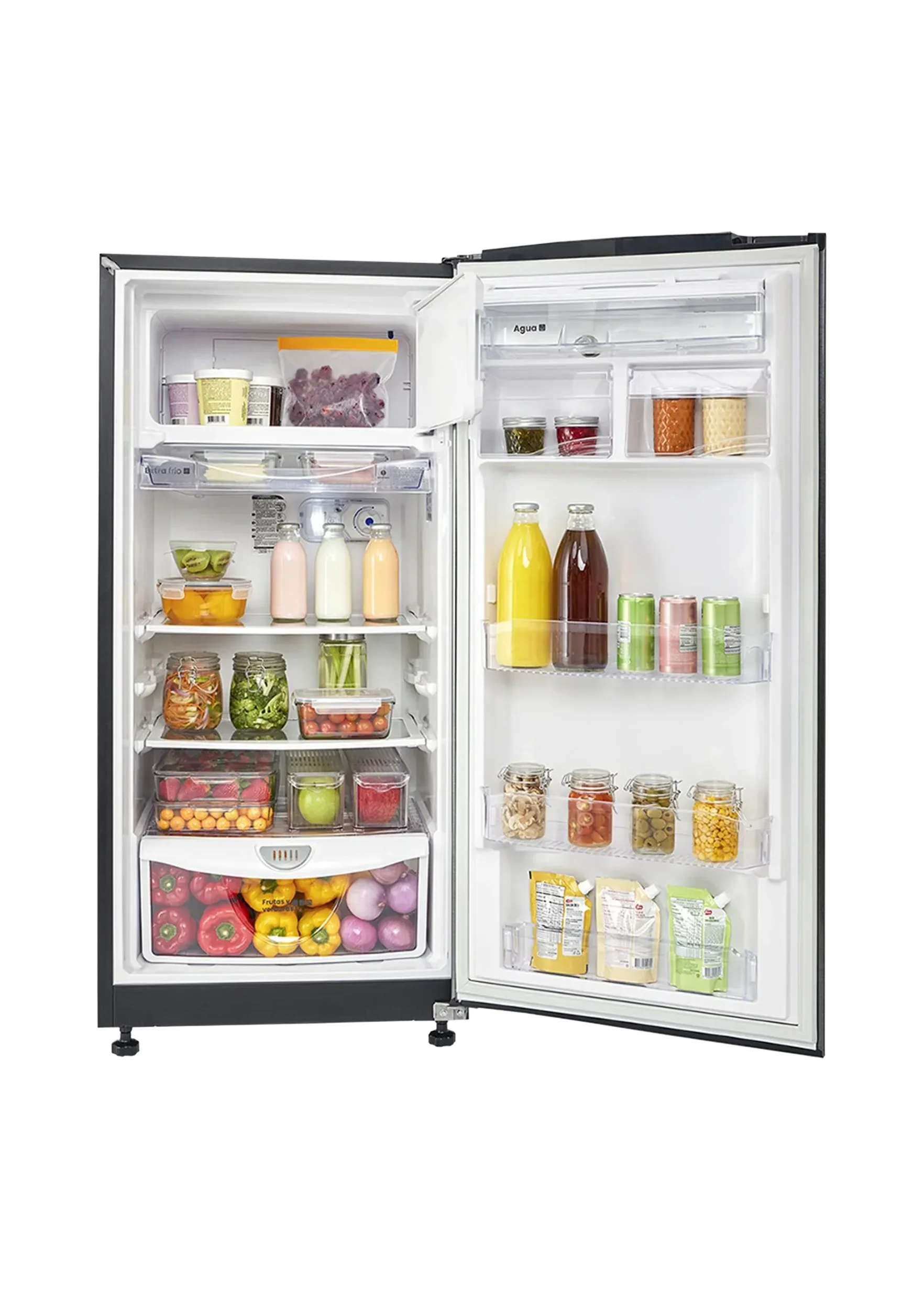 Refrigeradora Haceb tipo frost de 220 litros de capacidad neta con 29 litros en el congelador y 184 litros en el compartimento refrigerador. Cuenta con iluminación LED, estantes de vidrio templado, control manual de temperatura, sistema de desescarche semiautomático y dispensador de agua.